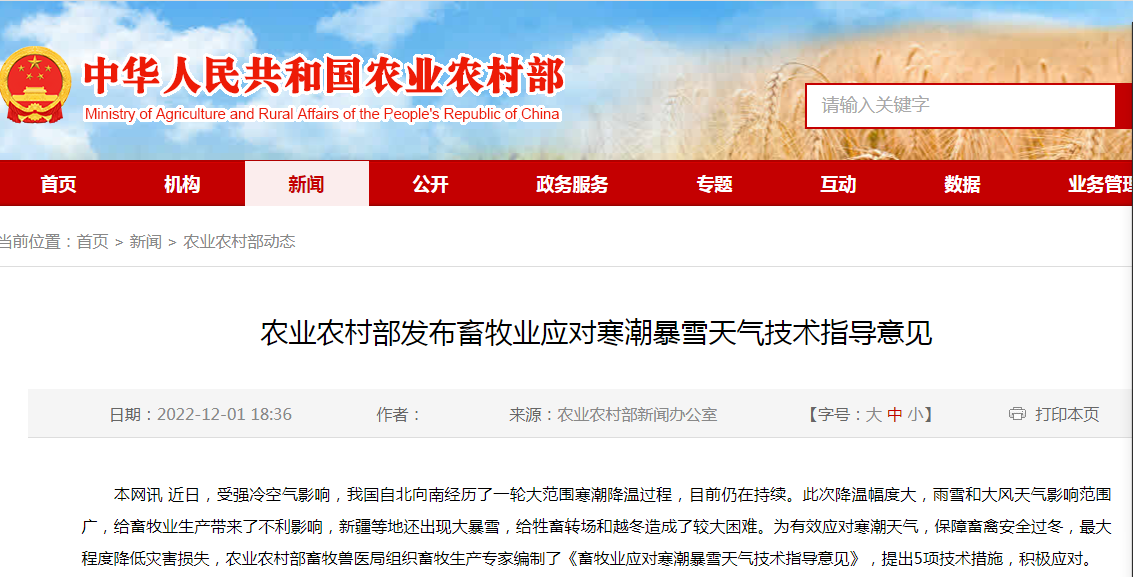 速看!農業農村部發布畜牧(mù)業應對寒潮暴雪天氣技術指導意見