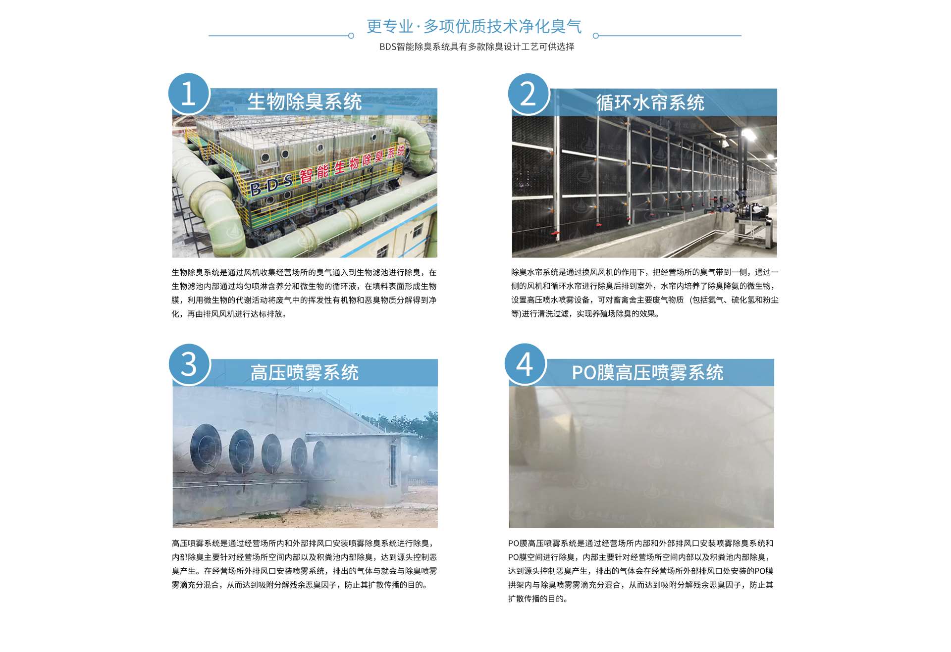 利用液相來吸收氣(qì)相,因為豬舍(shě)臭氣中的主要成份是(shì)氨氣、硫化氫和粉塵(chén)這類,這些物質都相對易溶於水,我們可以在循環(huán)水中投加入生(shēng)物菌或除臭溶液,這些物質都會與臭氣分子進(jìn)行反(fǎn)應,氧化和氯化,將臭(chòu)氣(qì)分子徹底分解,因而能達到除臭的效果。