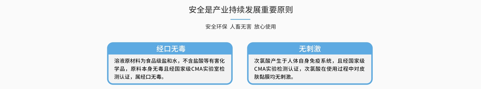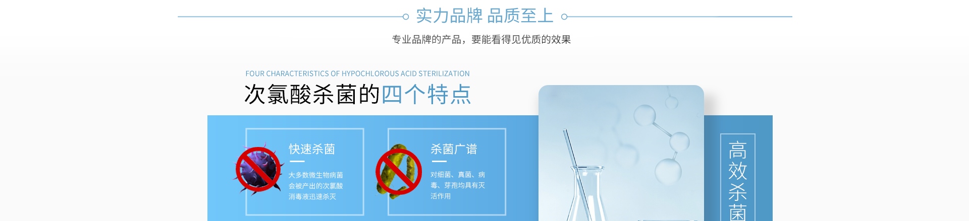 安全:高精(jīng)度次氯(lǜ)酸弱酸水(shuǐ)對(duì)人體無害,在除菌處理時,與有機物(wù)或菌接觸後會生成普通的水。